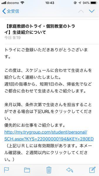 家庭教師のトライについてです このメールが来たってことは合格です 教えて しごとの先生 Yahoo しごとカタログ